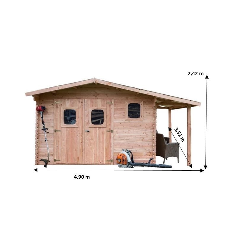 • Garantie : 5 ans pour le bois, 2 ans pour la couverture du toit