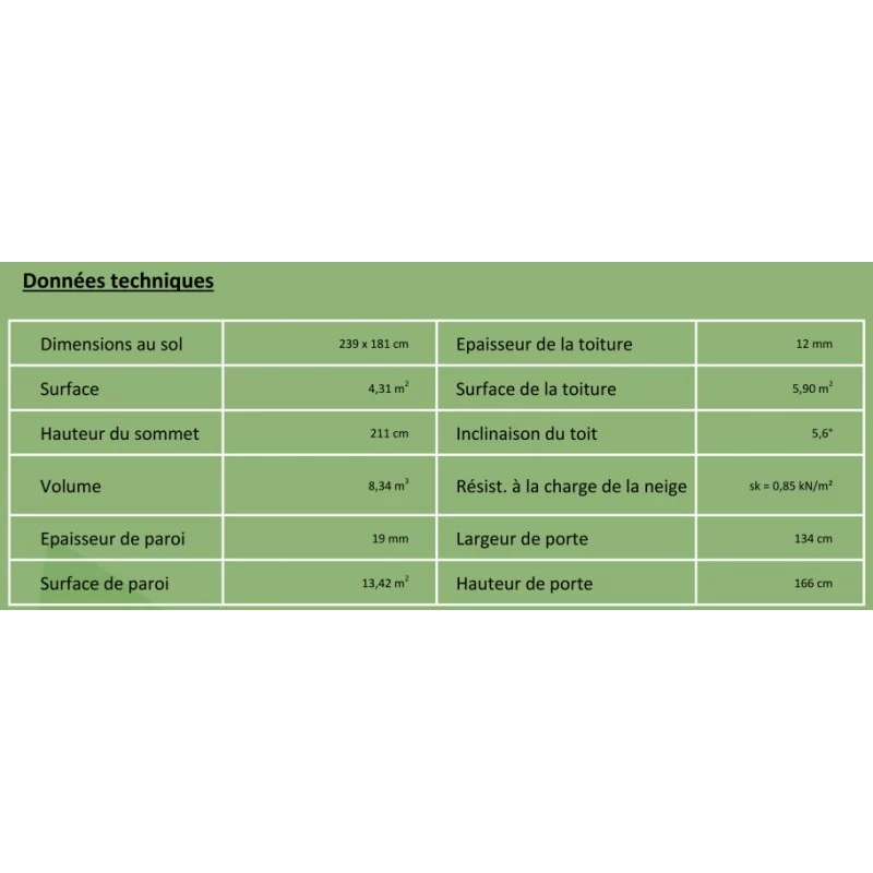 La toiture est réalisée en MFP imitation bois massif. La pente de toit peut se monter vers l’avant ou vers l’arrière de l’abri. C’est vous qui choisissez!
