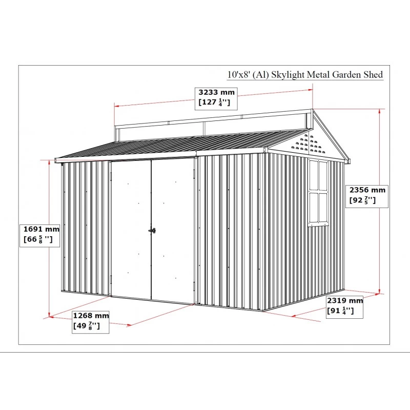 L’abri de jardin en alu 7,27m² Duramax est doté d’un large puits de lumière et d’une fenêtre sur le côté ce qui apporte une bonne luminosité à l’intérieur de l’abri. Le puits de lumière et la hauteur sous faîtage qui dépasse 200cm vous permettent de profiter pleinement de l’espace de stockage offert.