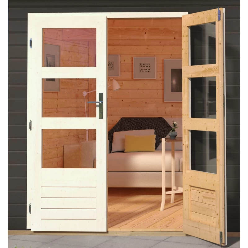 L’abri de jardin Grönelo est complété par une double porte battante semi-vitrée qui offre encore plus de clarté à votre abri et le rend facile d’accès. Sa porte est dotée d’une poignée avec serrure, vous devez tout simplement fermer à clé afin de sécuriser vos objets.