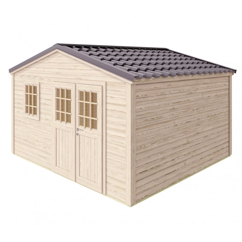 Robuste, l’abri de jardin en bois massif 14m² SHELTY + est réalisé en madriers épais de 28mm qui s’emboîtent pour un montage facile. L’épicéa du Nord utilisé pour sa construction est issu des forêts gérées d’une manière responsable et est donc écologique. Livré brut, le bois nécessite l’application d’une couche de lasure ou d’une peinture à votre choix ce qui renforcera sa résistance aux intempéries dans le temps. Quant à la base, elle est en bois traité autoclave.