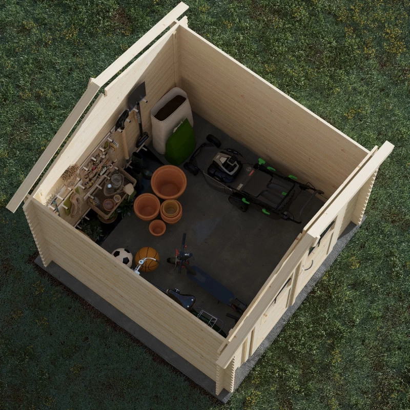 Solide et robuste, l’abri de jardin 5,9m² Juno est réalisé en bois massif provenant des forêts gérées d’une manière responsable. Écologique, la construction en madriers de 19mm est facile à monter puisqu’il sont emboîtables. Livré brut, le bois nécessite l’application d’une couche de lasure ou d’une peinture à votre choix ce qui augmentera sa résistance aux intempéries tout en lui confiant un look unique et personnalisé.