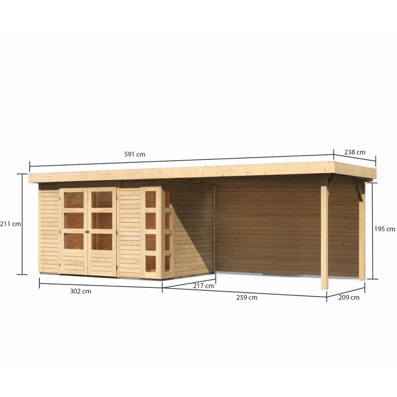 L’avis du spécialiste sur l’abri de jardin en bois massif 6,55m² Kerko 4 avec appentis 280cm et paroi arrière – Karibu :
