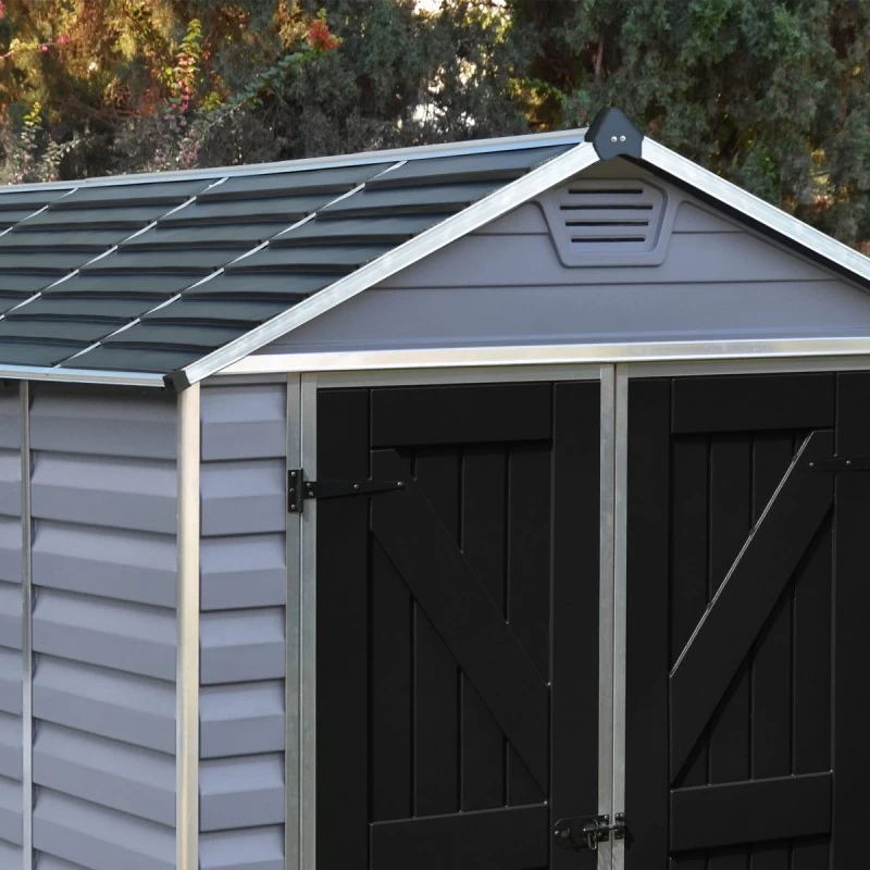 Dans la gamme Skylight Deco de Canopia by Palram, cet abri en résine de 3,97m² est le plus grand qui puisse s’installer sans autorisation de la mairie, nécessaire pour les abris de jardin de plus de 5m². Avec ses deux tonalités de gris anthracite foncé et clair il ajoutera une belle touche contemporaine et élégante dans votre jardin.