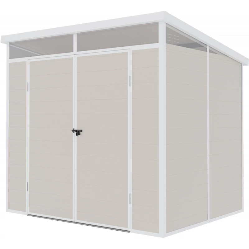 L’avis du spécialiste sur l’abri de jardin en résine 4,10m² beige toit plat skylight + plancher – Jobu