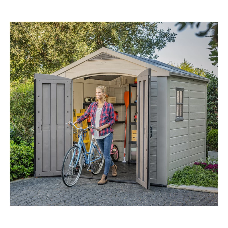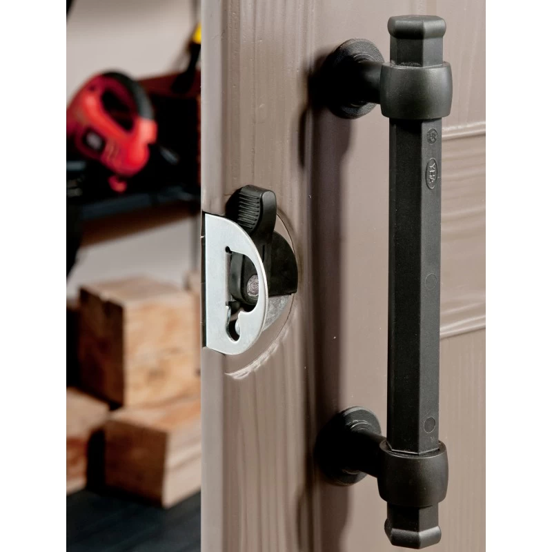 La gamme des abris en résine Sydney Keter se distingue des autres produits concurrents sur le marché par la hauteur de leurs parois qui atteignent 187cm. Les 2 étagères, livrées avec cet abri de jardin sont un atout supplémentaire qui vous permettra d’utiliser le volume intérieur d’une manière optimale. Vous pouvez y ranger tous vos outils de jardin même les plus encombrants grâce à la porte double qui vous assurera une large entrée.