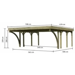 Carport Simple En Bois Autoclave Avec Toit PVC Et 1 Arc D’entrée 14,9m² – 304x490cm – Karibu