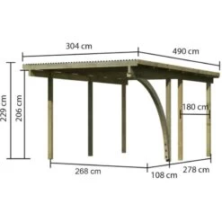 Carport Simple En Bois Autoclave Avec Toit PVC Et 2 Arcs D’entrée 14,9m² – 304x490cm – Karibu