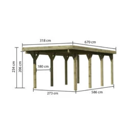 Réalisé en bois massif, le carport double 50,9m² Karibu bénéficie d’un traitement autoclave innovant obtenu suite à l’imprégnation sous pression qui est un procédé écologique et très efficace. Grâce à cette technologie moderne, la résistance du bois face aux intempéries et aux attaques biologiques s’améliore.