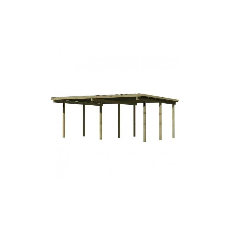 L’avis du spécialiste sur le carport double en pin massif autoclave avec toit PVC 27,58m² – Karibu