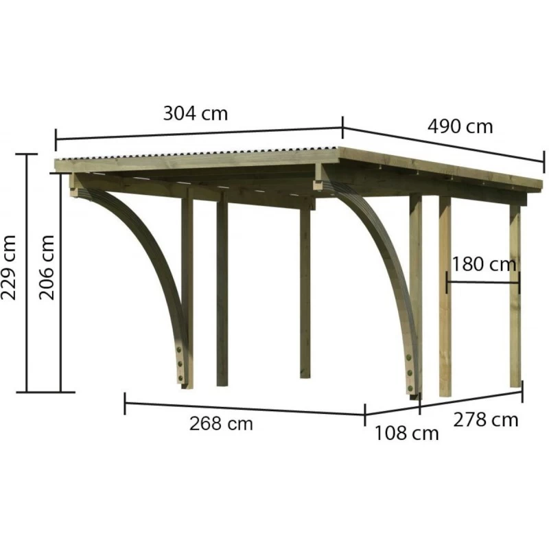 L’avis du spécialiste sur le carport simple en bois autoclave avec toit PVC et 2 arcs d’entrée 14,9m² – 304x490cm – Karibu