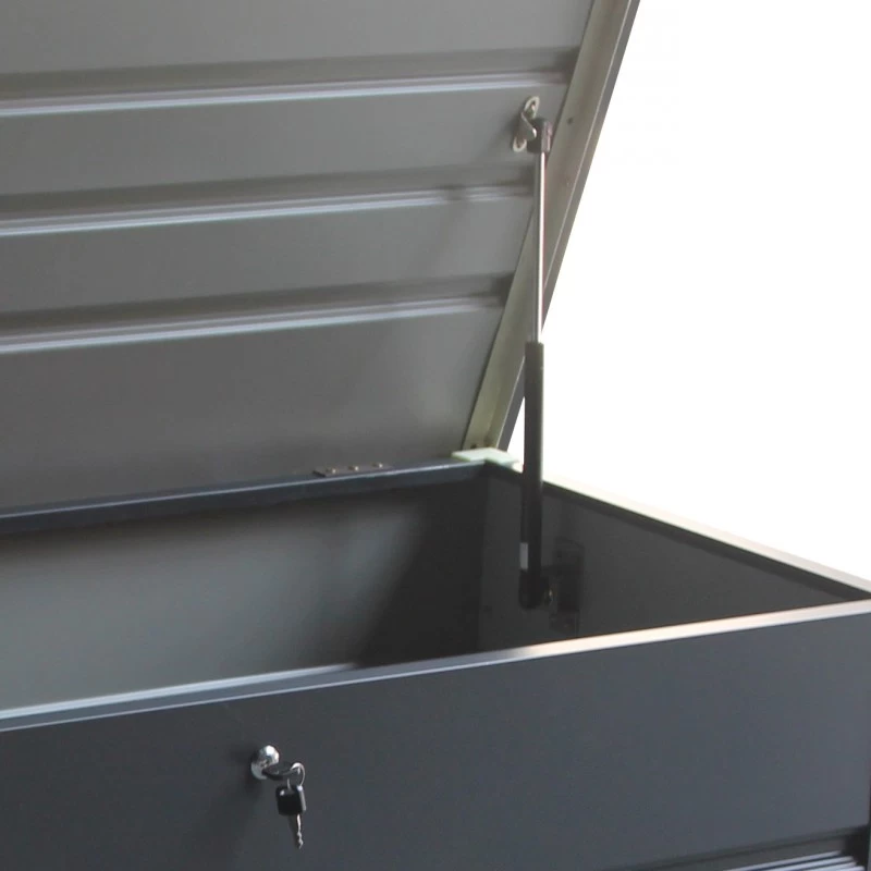Besoin de rangements supplémentaires dans le jardin ou votre garage ? www.mon-abri-de-jardin.com vous propose ici le coffre X-Metal de couleur anthracite, très résistant, et esthétique avec sa couleur grise anthracite.
