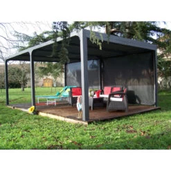 Pergola Bioclimatique Autoportante 300x300cm En Aluminium – Gris – Maia – Couleurs Du Monde