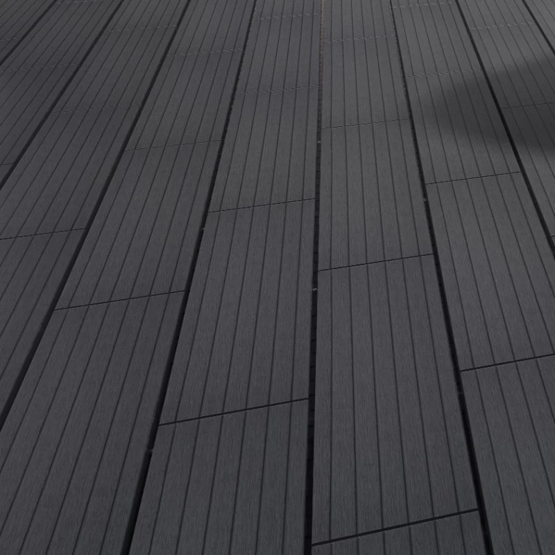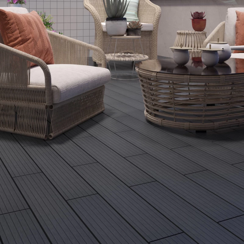 Chaque lame a un profil 6V (rainures dans la longueur de la lame) qui lui procure un caractère anti-dérapant. De ce fait, vous pouvez tout à fait poser les lames clipsables en bois composite à l’extérieur de votre abri de jardin, et créer une terrasse décorative.