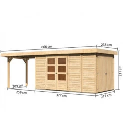 Abri De Jardin En Bois Massif 8,88m² Kastorf 7 Avec Appentis 320cm Et Paroi Arrière – Karibu