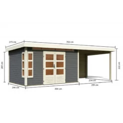 Abri De Jardin En Bois Massif Gris Terre 8,88m² Kastorf 7 Avec Appentis 320cm – Karibu
