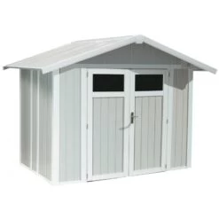 Abri De Jardin En PVC 11,2m² DECO Gris Clair Et Blanc Grosfillex + Kit Ancrage Offert