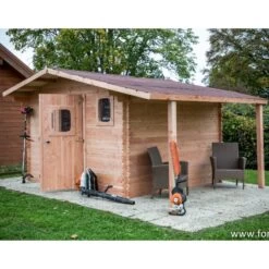 Abri En Bois De Douglas DOMMAR 19,65m² Madriers 28mm Avec BĂ»cher + Couverture Onduline – HABRITA