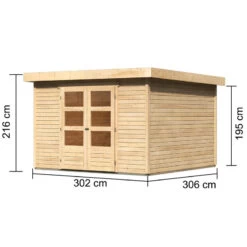 Abri De Jardin En Bois Massif 8,88m² Kandern 7 Avec Appentis 320cm Et Paroi Arrière – Karibu