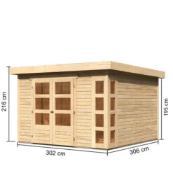 Abri De Jardin En Bois Massif 8,88m² Kastorf 7 Avec Appentis 320cm Et Paroi Arrière – Karibu
